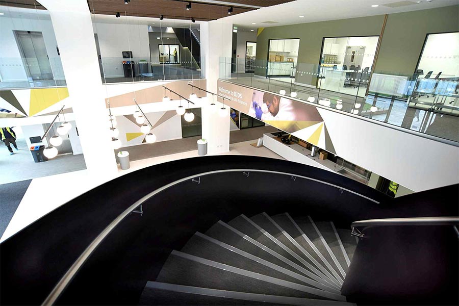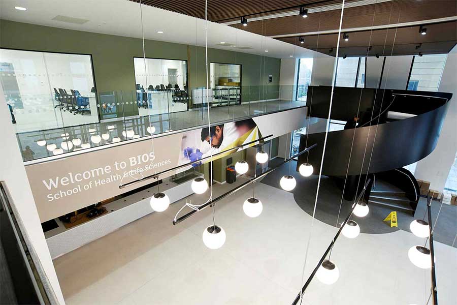 Expanding our long-established School of Health & Life Sciences, Bios is our state-of-the-art new £36.9m facility at the heart of our campus, offering high-quality, leading-edge laboratories for the sciences and clinical subjects including anatomy, pharmacy, microbiology, chemistry, Earth sciences and food sciences.
